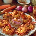Bean Sprout Fritters are a delightful and crispy dish that brings together the fresh flavors of vegetables and succulent shrimp, all wrapped in a light and crunchy batter. Perfect as a snack or appetizer, these fritters are not only easy to make but also provide a satisfying crunch with every bite. The combination of mung bean sprouts, carrots, and shallots, enhanced with a touch of annatto powder, makes for a visually appealing and delicious treat that pleases the palate and impresses at any gathering.